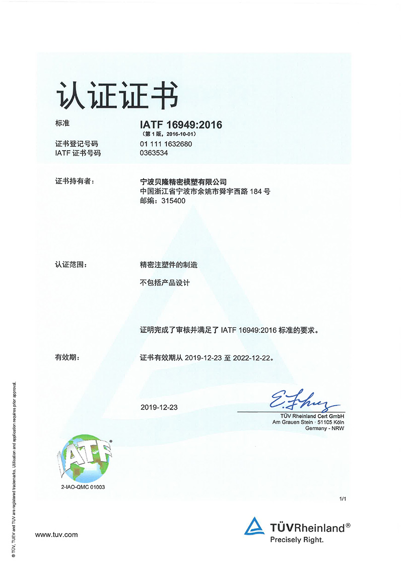 貝隆精密科技股份有限公司(股票代碼:301567)成立于2007年,坐落于中國模具之鄉、浙東名城浙江省余姚市,公司是專業從事精密注塑、沖壓、埋入成型、模具研發(fā)與制造的高新技術企業。被評定為國家制造業單項冠軍、國家級專精特新小巨人企業、國家知識產權優(yōu)勢企業。